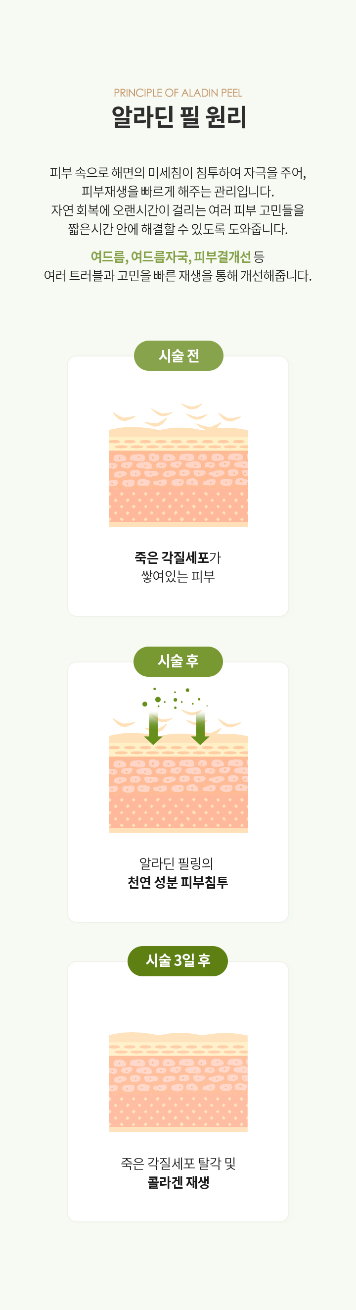 알라딘필링은 천연 담수 해면 성분을 이용하여 각질세포를 탈락시켜 새살을 돋아 나오게 하는 시술로,