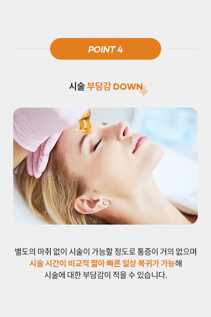시술 후 건조함이 동반될 수 있으므로 보습제를 자주 사용해주시고, 외출 시 선크림을 반드시 바르는 것이 좋습니다.