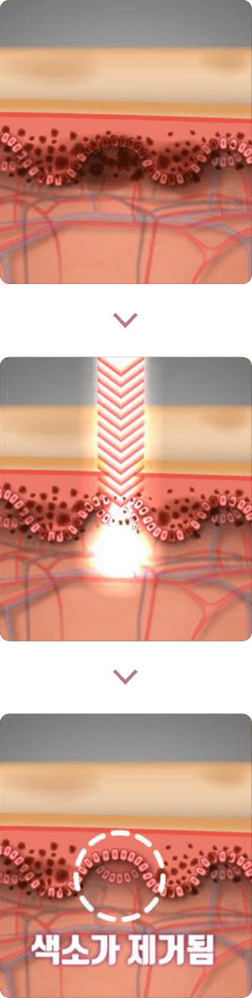 레이저의 멜라닌 색소를 흡수하는 파장을 이용,